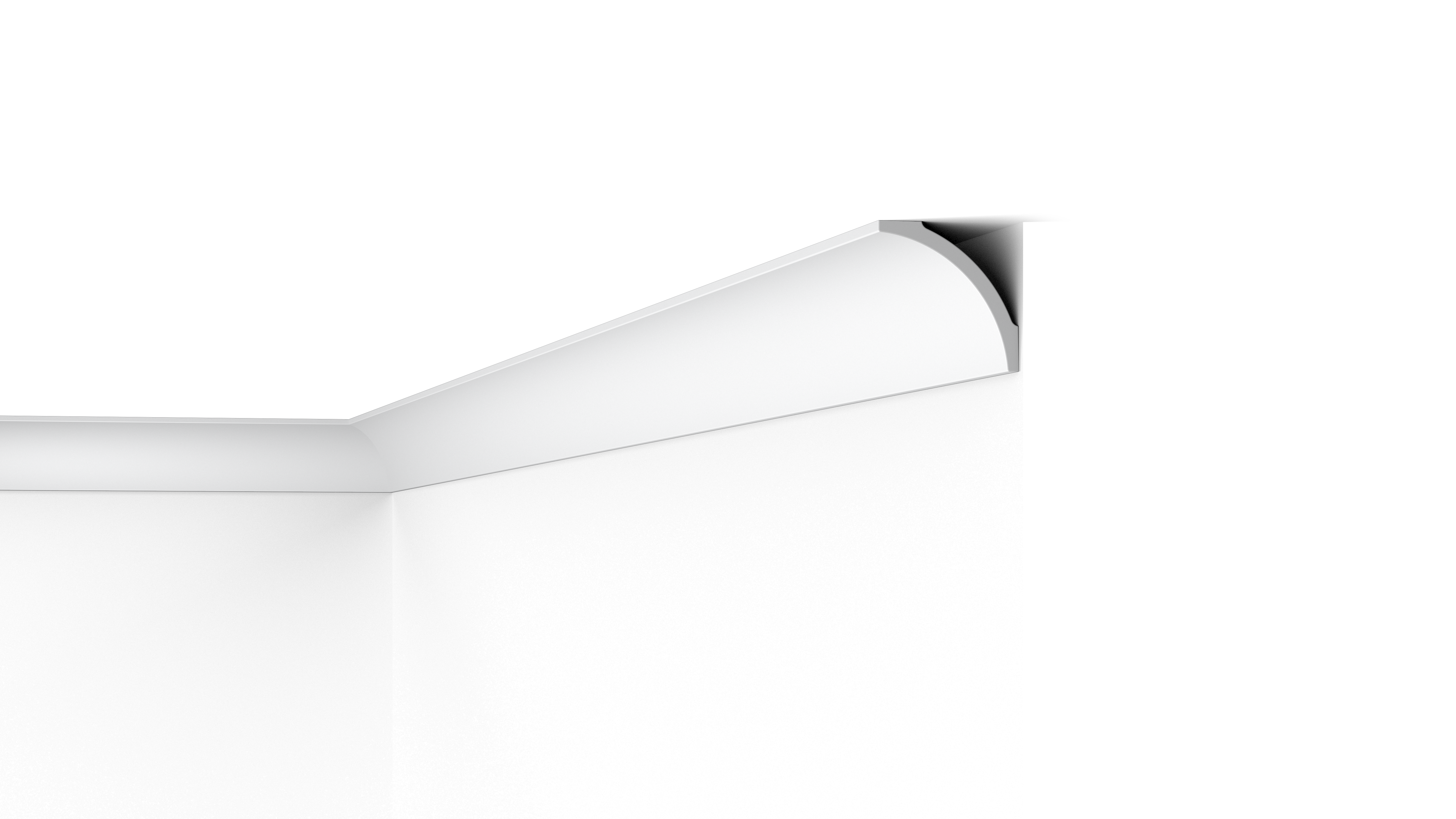 Intégrez une moulure de plafond lisse et arrondie dans un intérieur pour une finition sobre. Une moulure de plafond incurvée, comme la B8 NOMASTYL®, crée une transition harmonieuse entre le mur et le plafond et ajoute de l'intérêt à la forme d'une pièce. Le polystyrène résiste à l'humidité et convient donc parfaitement aux salles de bains, aux cuisines et aux bars.