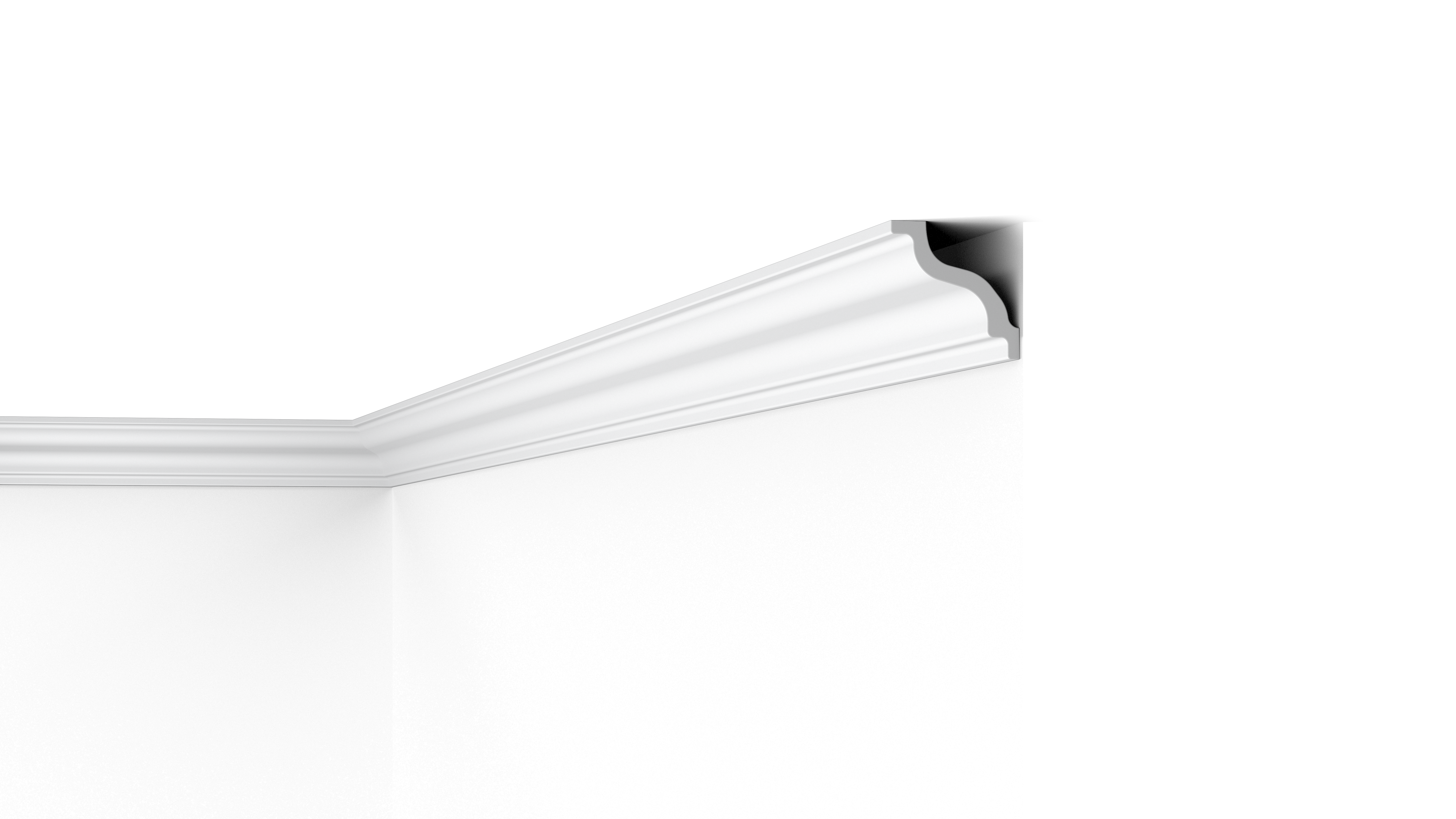 Pour les intérieurs classiques, la forme harmonieuse et élégante de la moulure de plafond K NOMASTYL® met en valeur la qualité de finition d’une pièce. Un profil légèrement en forme de S crée une ombre subtile sur la moulure et donne du relief à un espace. La combinaison de la courbe et des lignes confère un aspect classique à la moulure de plafond K NOMASTYL®.
