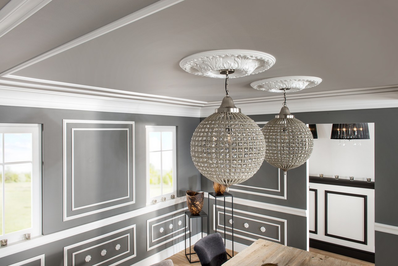 Décorations murales, panneaux, carreaux, rosaces murales et cimaises pour donner à votre intérieur une touche de modernité.