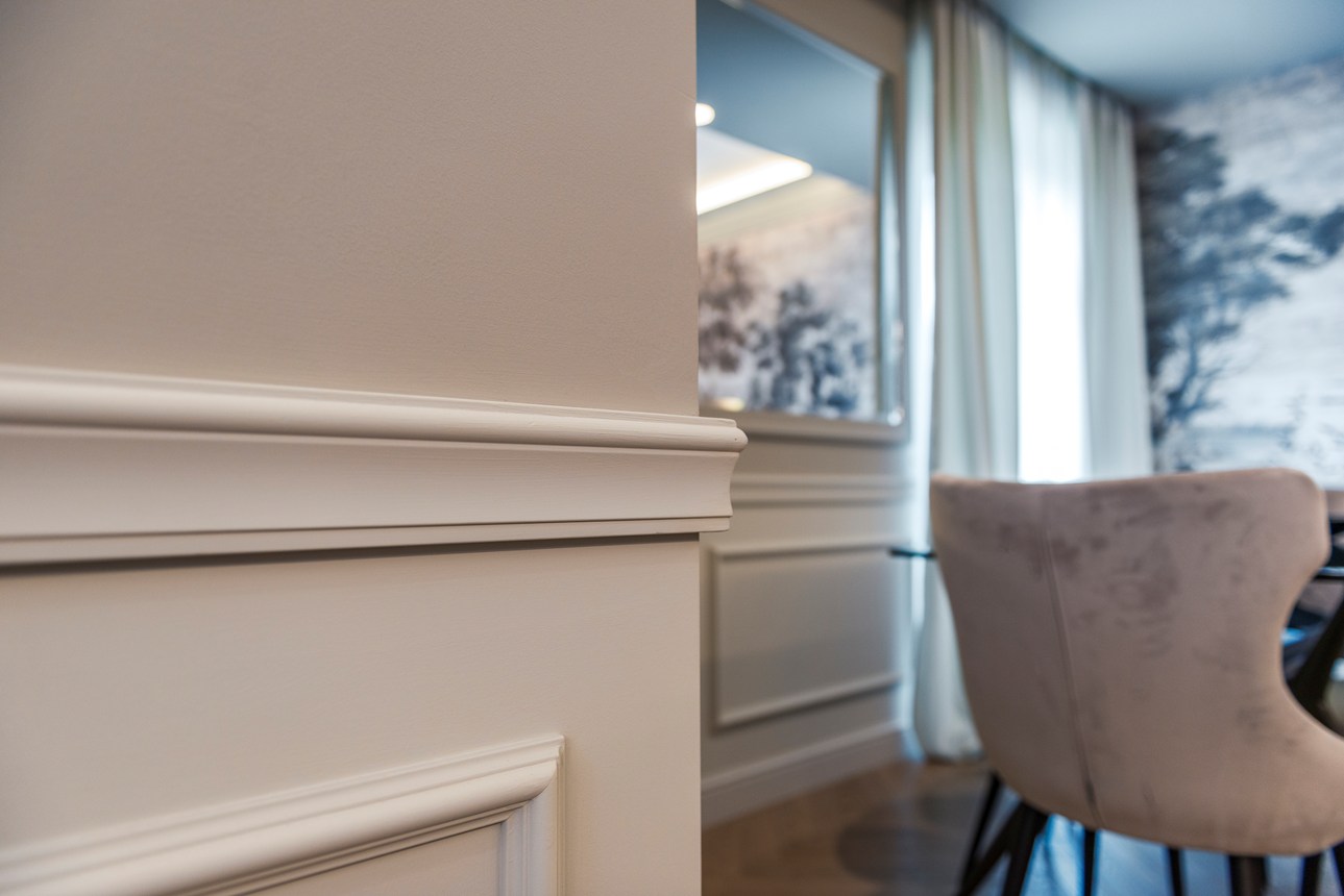 La WL1 WALLSTYL® peut être placée sur le mur ou au plafond, comme une cimaise ou positionnée afin de créer des boiseries décoratives. La cimaise WL1 WALLSTYL® est prête à peindre grâce à une couche de primaire appliquée en usine. Le polystyrène à haute densité est léger, ce qui simplifie l’installation.
